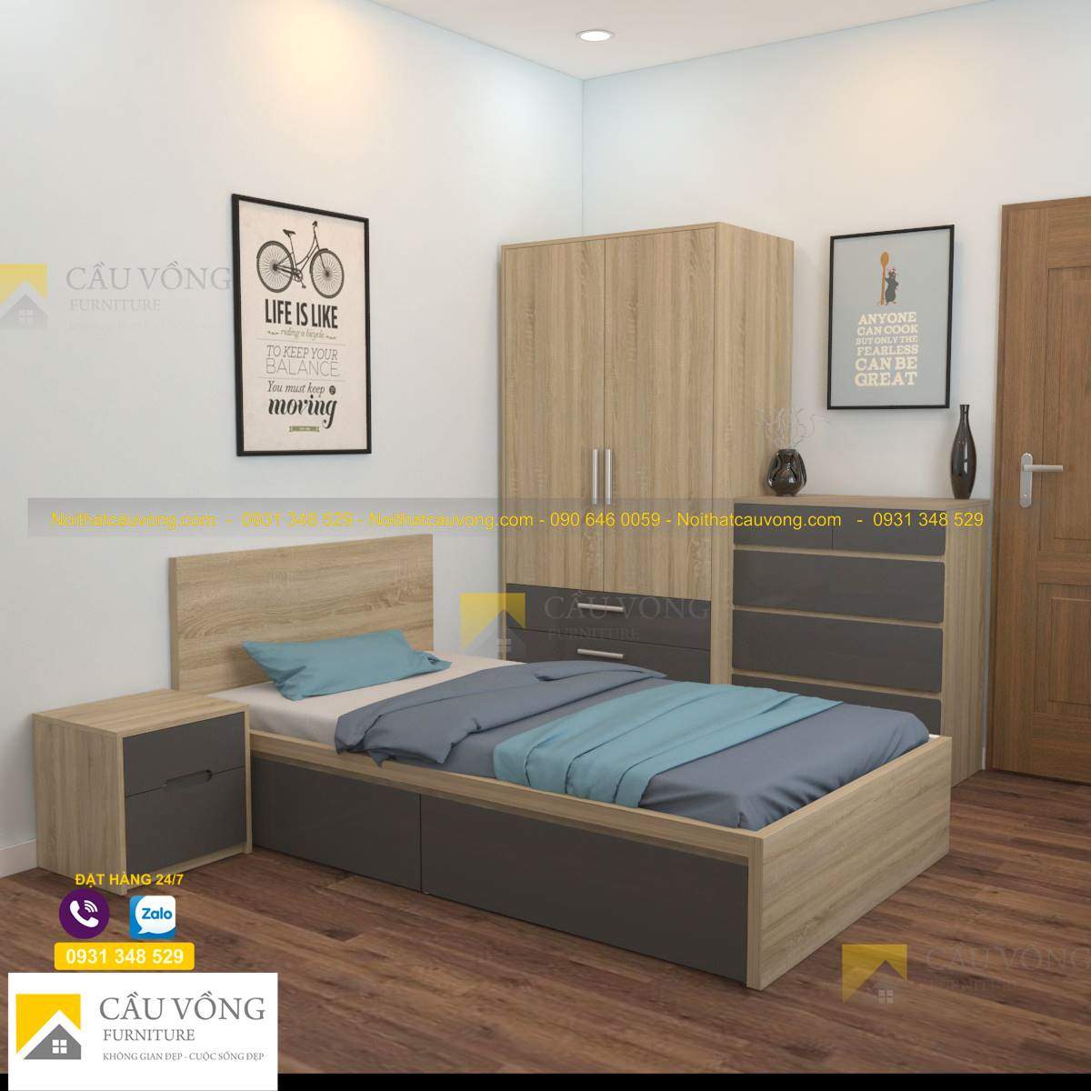 Bộ phòng ngủ đẹp giá rẻ, bộ giường tủ gỗ hiện đại với tủ hộc kéo để đồ xếp