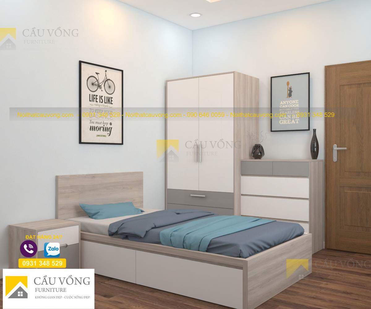 Bộ giường tủ nhỏ gọn dành cho phòng ngủ nhỏ, nội thất phòng cho thuê