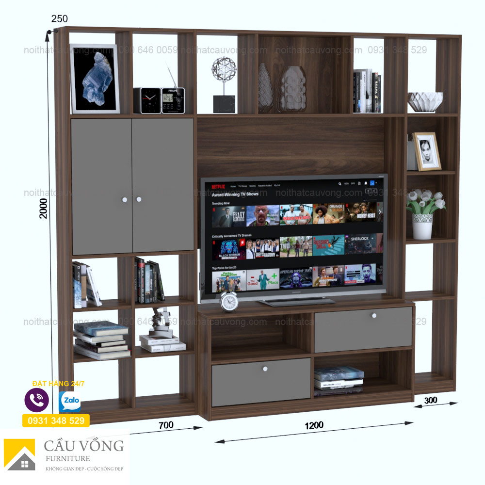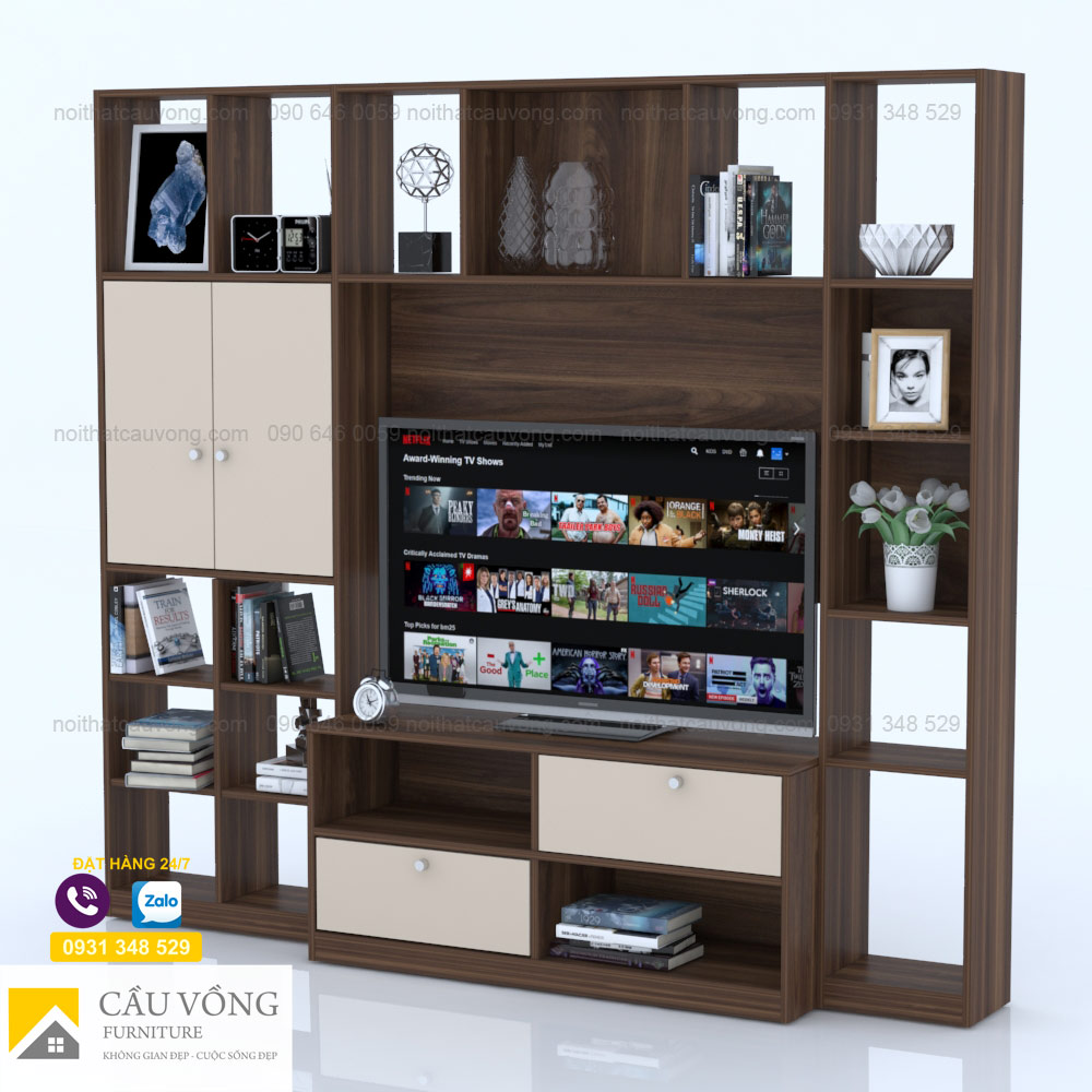 Tủ được thiết kế hiện đại đa năng, tủ có thể đặt giữa nhà để ngăn phòng,có kệ tivi, kệ sách....