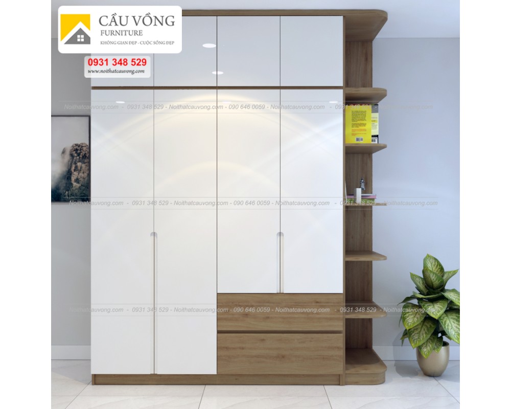 Tủ quần áo thiết kế hiện đại, cánh tủ tay nắm âm sơn trắng bóng 2k, thùng tủ gỗ MFC Melamine An Cường, có nhiều mẫu gỗ để bạn lựa chọn