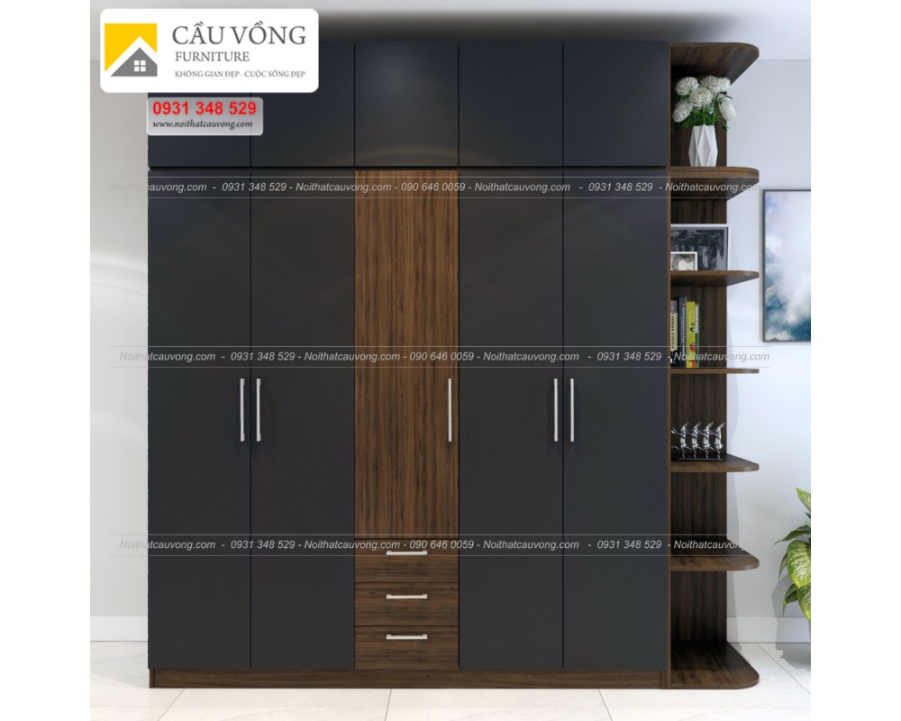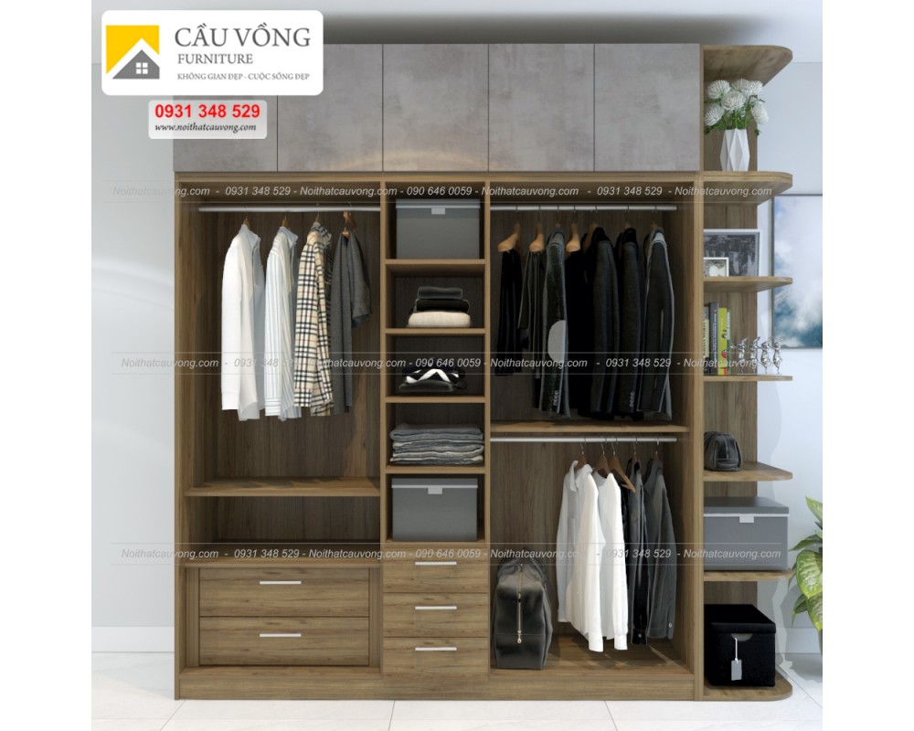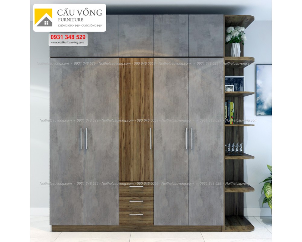 Tủ quần áo gỗ An Cường phong cách tường bê tông